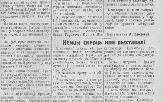 Террор и насилие немецких захватчиков не сломили волю нашего народа. Гитлеровцы всячески хотели истребить и стереть с лица земли наших...