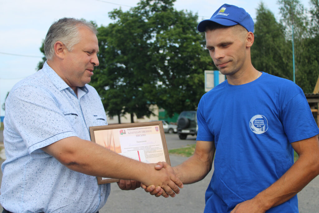На Чечерщине определился первый тысячник на отвозке зерна – молодой водитель Дмитрий Шаманский из ОАО «Вознесенск». Поздравить агрария с высоким достижением приехали первый заместитель председателя райисполкома, начальник райсельхозпрода Виктор Браточкин, профсоюзные лидеры Анна Туровец и Анжелика Кравченко, а также первый секретарь райкома БРСМ Яна Орлова. Музыкальный подарок прозвучал в исполнении коллектива «Чачэрцы».