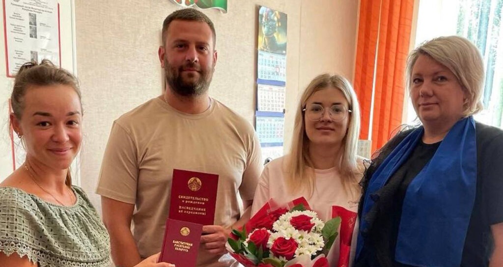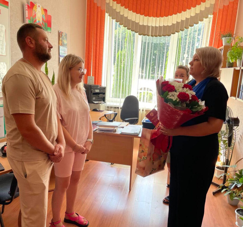 В юбилейный День Независимости нашей страны в Чечерске на свет появилась девочка. Счастье пришло в молодую семью Бабкуновых в первые минуты 3 июля. Родители назвали малышку Аделина и сегодня зарегистрировали свою дочурку в отделе ЗАГС. Новоиспеченным маме и папе торжественно вручили свидетельство о рождении.