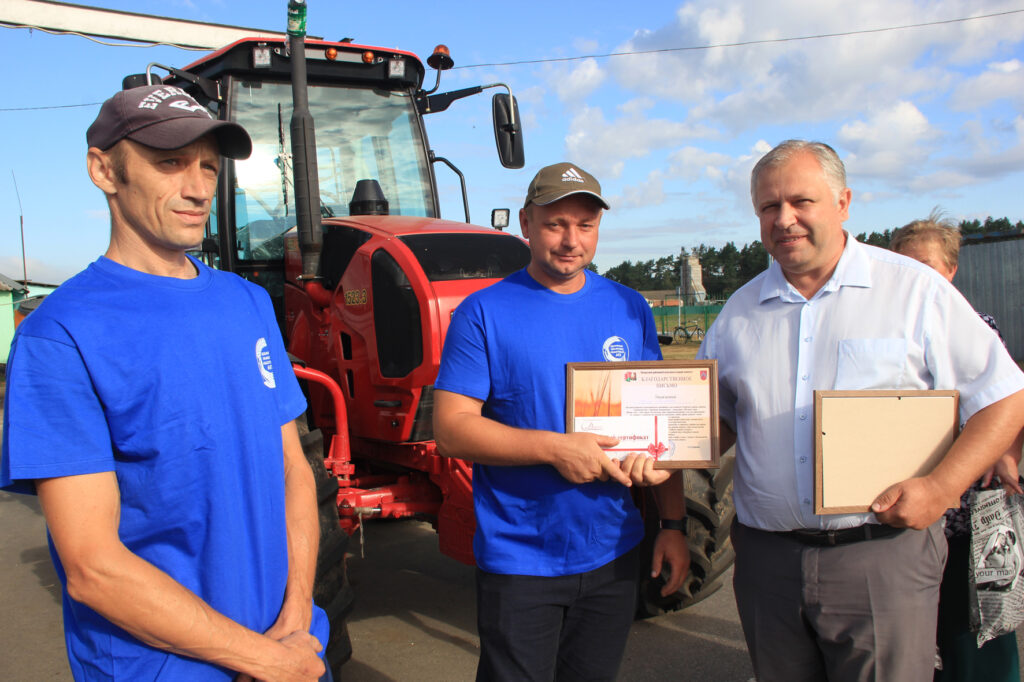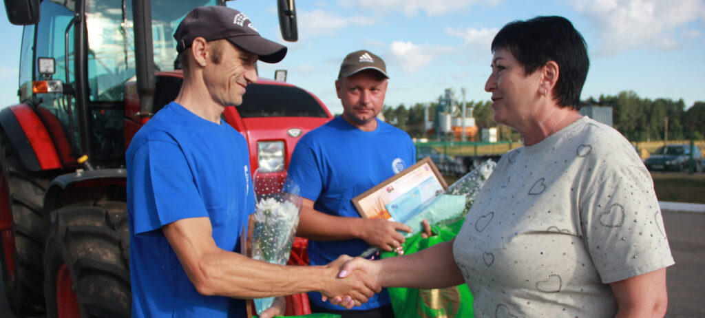 Юрий Буланов из ОАО «Звезда» открыл счет рекордным показателям в 1000 тонн на уборке хлеба в хозяйстве. Водителя МАЗа чествовали в торжественной обстановке с подарками, цветами и задорной песней от Ирины Курдюмовой. Следом за ним вышел в тысячники на отвозке зерна его коллега Юрий Катетунов. Пожелания здоровья, бодрости и хорошей погоды звучали в их адрес от представителей делегации из района и директора сельхозпредприятия Галины Трибунах. «На таких людях держится земля. Им можно доверить самое ответственное дело с полной уверенностью, что они не подведут. Спасибо вам за труд», – обратилась Галина Петровна к хлеборобам и крепко пожала руки.