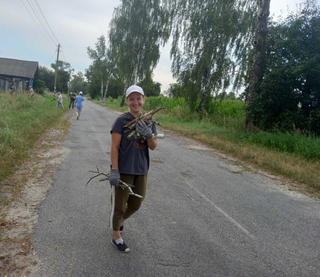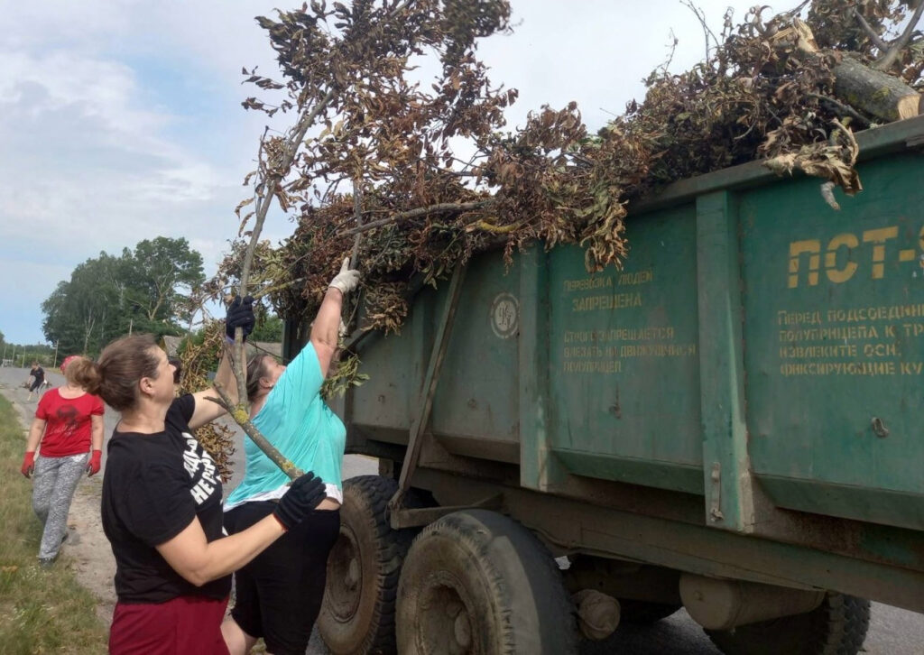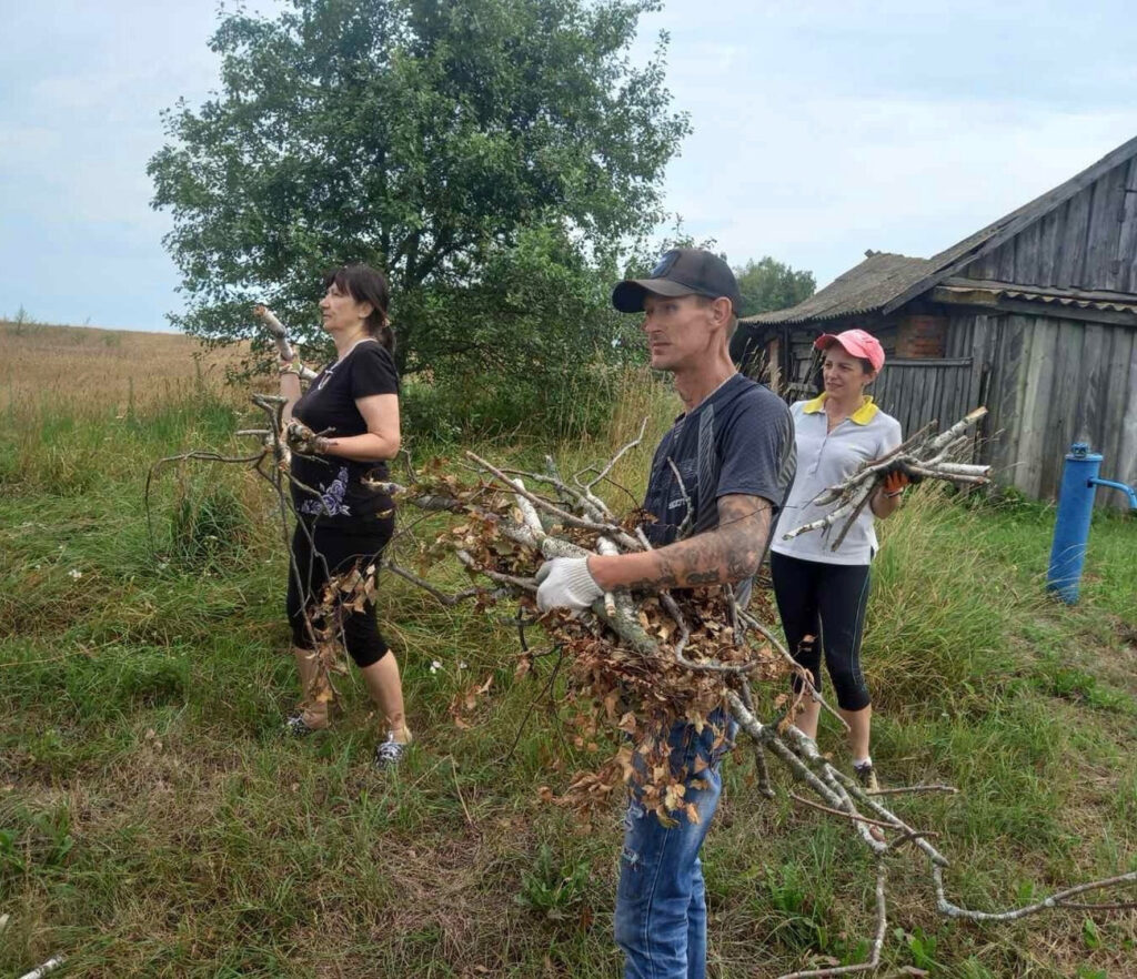 Работники центра соцобслуживания населения и управления по труду оказывают помощь сельским жителям в уборке улиц после урагана
