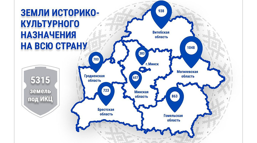 Таким образом, с ноября 2024 года земли историко-культурного назначения внесены в реестр АТЕ и ТЕ и отображены на публичной кадастровой карте Беларуси. Согласно данным карты, наибольшее число земель историко-культурного назначения расположено в Могилевской области, где таковых 1048, следом Витебская область (938), Гомельская (863), Брестская (723), Гродненская (703), Минская (657) и Минск (383). Всего же земель под историко-культурной ценностью в республике насчитывается 5315.