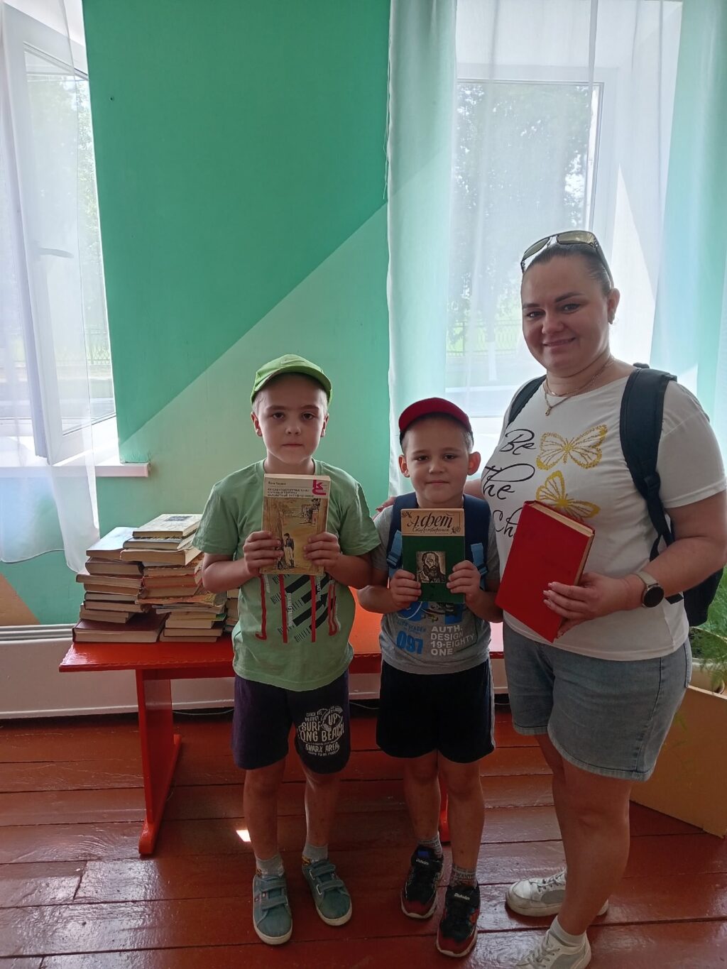 Жительница райцентра Кристина Ножеева вместе с сыновьями передала центральной райбиблиотеке личные книги.