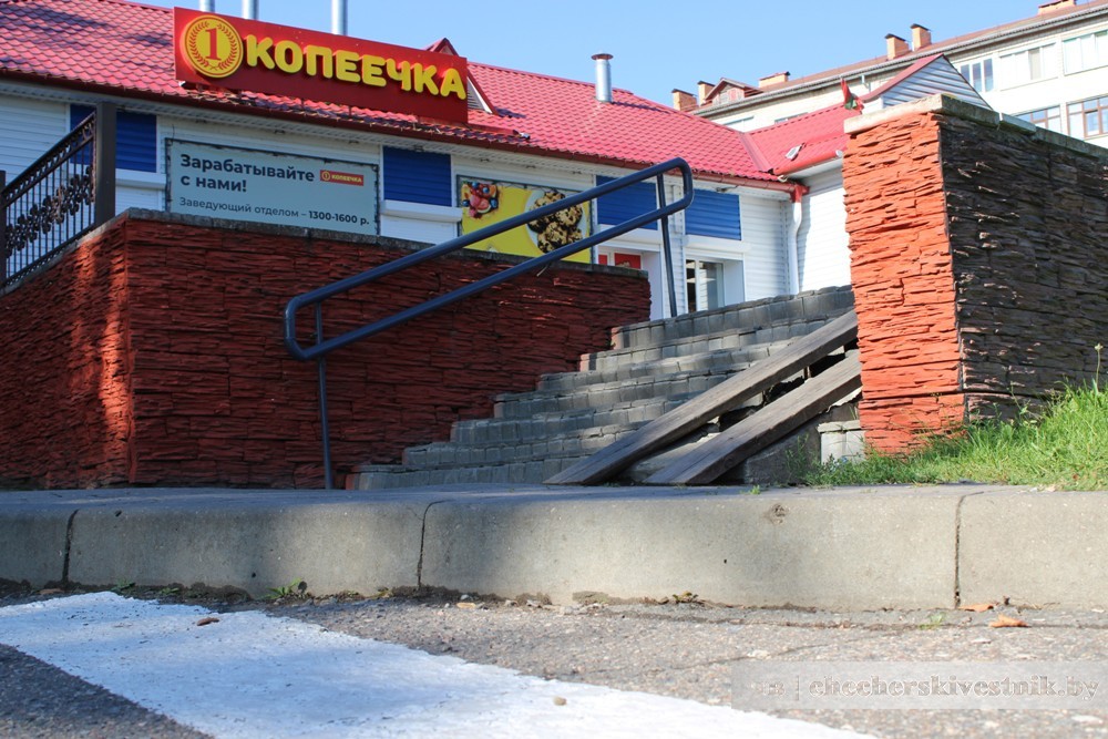 На переходе с улицы Советской к магазину “Копеечка” в Чечерске неудобства пешеходам доставлял бордюрный камень высотою более 10 сантиметров, создавая затруднения при передвижении родителей с детскими колясками, велосипедистов, людей пожилого возраста, а также других граждан.