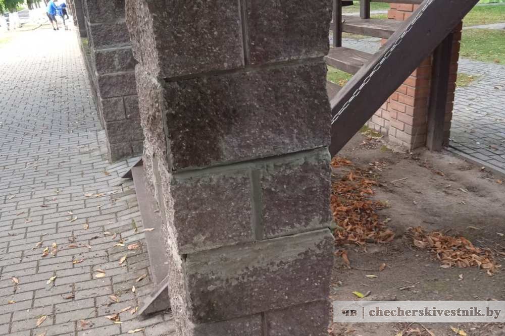 Игровое оборудование и территория должны соответствовать нормам безопасности. А значит, необходимо своевременно проводить ремонт конструкций. Видимо, пришло время ответственной организации обследовать на предмет изъянов забор, установленный по периметру площадки, и осуществить необходимые мероприятия по его восстановлению. Ведь в определенных местах он представляет реальную угрозу жизни и здоровью детей. Облицовочный материал отошел, плитка откололась, некоторые столбики стали неустойчивыми и могут рухнуть.