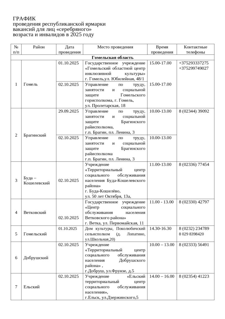 Опубликован график ярмарок вакансий для пожилых и инвалидов в Беларуси