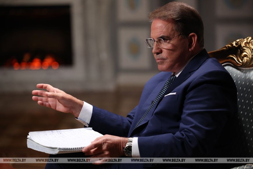 Интервьюером выступил ведущий RT, автор программы “Эффект Санчеса” Ричард (Рик) Санчес. Интервью продолжалось почти два часа, пишет БЕЛТА.