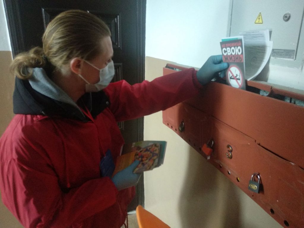 Все необходимое ребята приносят прямо к дверям квартир и домов. Также молодые люди распространяют листовки с профилактической информацией. Их можно видеть на информационных стендах, дверях магазинов и найти в почтовом ящике.