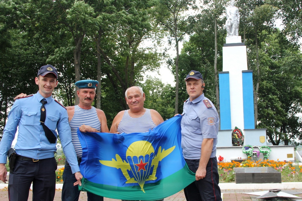 У боевой машины десанта встретились сотрудники и ветераны милиции. Для них служба в голубых беретах была не просто долгом перед Родиной, а стала впоследствии толчком к выбору профессии. У каждого своя биография, свои интересы и путь по судьбе. Но всех объединяет одно – белый купол и надежные стропы парашюта. Десантники развернули флаг ВДВ и сделали памятное фото, возложили цветы к памятнику погибшим на Замковой горе и почтили их память минутой молчания. И, конечно же, как всегда оказали поддержку и участие в судьбе тех, кто в том нуждается – навестили семью Алексеенко из Новозахарполья, где воспитывается ребенок-инвалид, и подарили мальчику и его сестренке школьные принадлежности, игрушки и сладости.