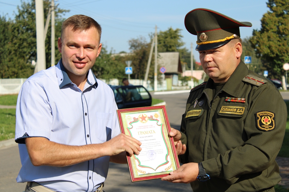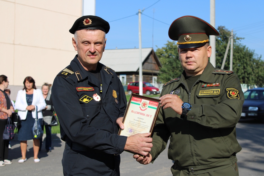 Служба в Вооруженных Силах – это долг и почетная миссия каждого настоящего мужчины, сказал в своем выступлении начальник обособленной группы Дмитрий Гулинков. Важно, чтобы молодое поколение понимало значимость, надежность, мощь и боеспособность белорусской армии, было готово получить необходимую военную подготовку, чтобы уметь постоять за свою страну и, если понадобится, защитить ее рубежи. Примером в этом деле служат те, кто уже прошел эту школу мужества, а сегодня сохраняет и пропагандирует лучшие армейские традиции. Именно за эти качества и патриотическое воспитание молодежи Дмитрий Гулинков наградил грамотой бывшего военнослужащего Павла Макаревича и вручил благодарственное письмо Владимиру Дворнику.