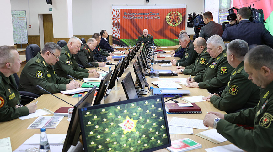 Президент Беларуси Александр Лукашенко посетил Министерство обороны, где в центре стратегического управления провел совещание по вопросам военной безопасности, сообщает БЕЛТА.