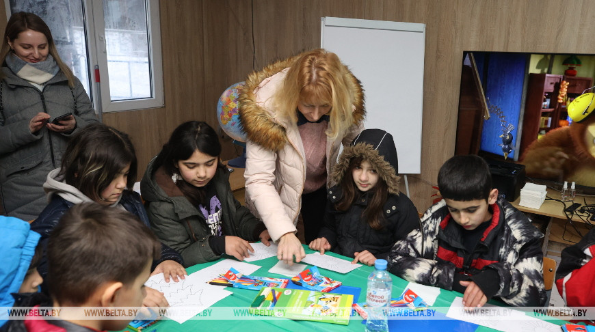 Первые уроки для детей беженцев провели в мобильном образовательном центре у ТЛЦ, передает корреспондент БЕЛТА.