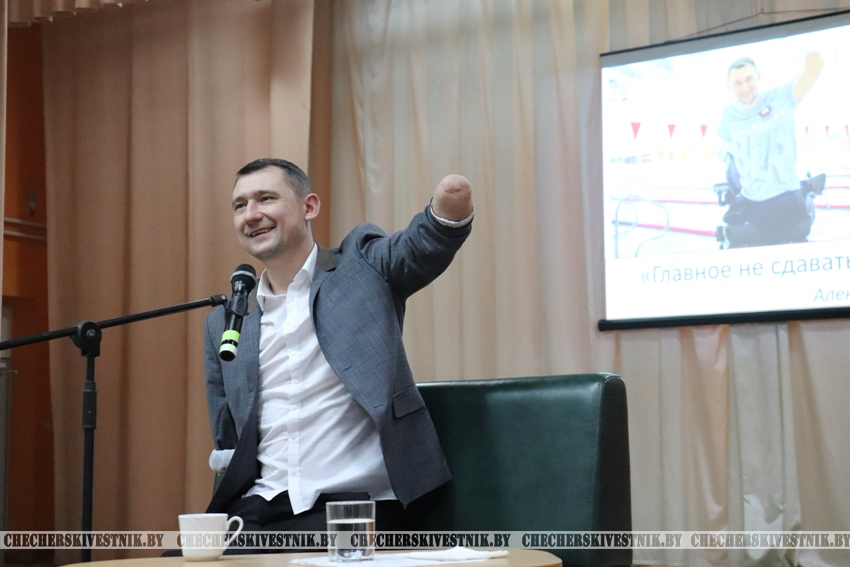 На встречу с молодыми людьми Чечерского района приехал известный белорусский паралимпиец, многократный рекордсмен мира и Европы, успешный общественный деятель, лауреат премии «За духовное возрождение», предприниматель, прекрасный муж и отец четверых детей, мотивационный спикер и член Конституционной комиссии Алексей Талай.