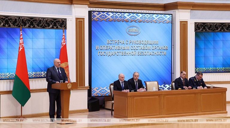 Президент Беларуси Александр Лукашенко на встрече с руководящим и оперативным составом органов государственной безопасности высказался насчет ситуации внутри и вокруг Беларуси, отметил заслуги сотрудников спецслужб в реагировании на имеющиеся вызовы, передает корреспондент БЕЛТА.