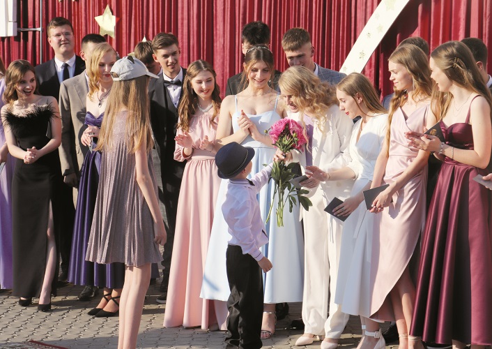 Элегантные вечерние платья и костюмы, у девушек – изысканные прически, макияж, украшения… Каждый из выпускников в этот день чувствовал себя как минимум именитым участником кинофестиваля. Щедрое на тепло лето оказалось благосклонным для обладателей новеньких аттестатов и подарило чудесный вечер – без ветра и дождя. Погода выгодно подчеркивала торжественный вид: отблески заходящего солнца придавали шарм и таинственность всему происходящему. Да, такое волшебное действо в жизни человека бывает только раз … Ребята по праву заслужили такой пышный праздник. Позади школьные экзамены и волнения, впереди – поиск себя во взрослой жизни, стартовая площадка к новому, неизведанному периоду. А сегодня та переломная грань, осознание которой вызывает и радость, и грусть…