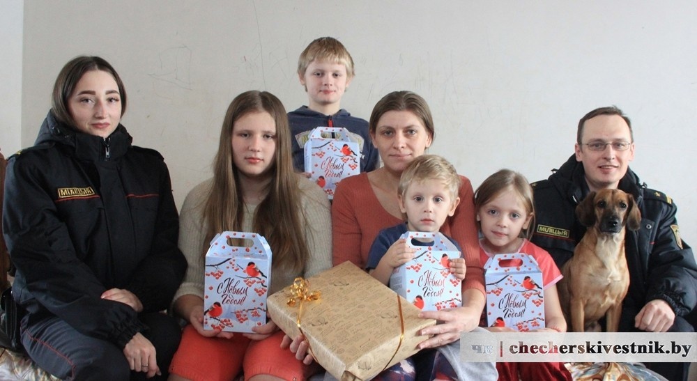 С новогодними подарками правоохранители посетили многодетную семью Марисых