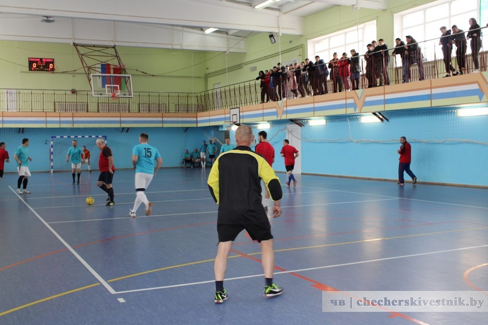 Товарищеская встреча по мини-футболу проходила в спортшколе между командами Чечерского и Красногорского района Брянской области России.