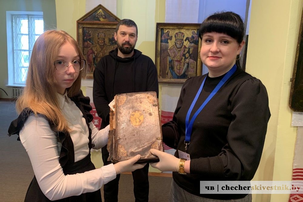 Чечерянин Андрей Жевайкин вместе с дочерью Мирославой передали в фонды музея старинную церковную книгу – «Минея. Ноябрь».