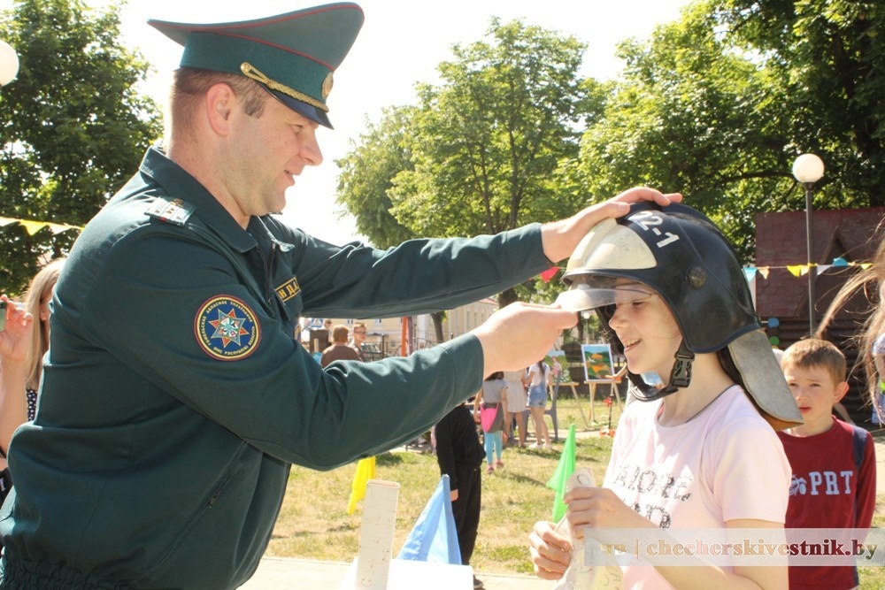 Впереди три месяца школьных каникул. Сделать лето безопасным – задача взрослых. На празднике в детском городке спасатели еще раз в игровой форме напомнили ребятам, как действовать в случае чрезвычайной ситуации, какой набрать номер при пожаре. На практическом уроке ребятам предложили на себе изучить профессию спасателя. Они примеряли спецодежду, а затем «тушили» условное возгорание из пожарного рукава.