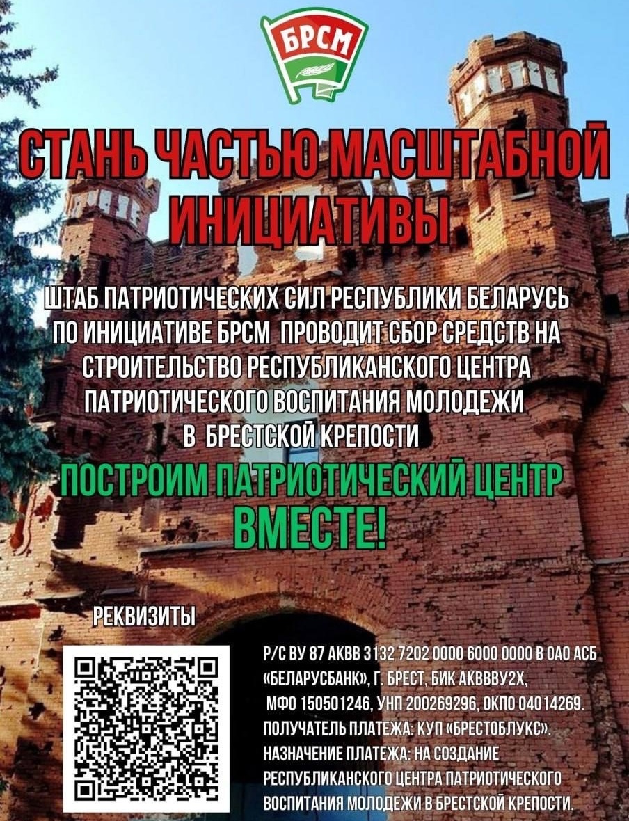 В Беларуси объявлен сбор средств на реконструкцию Республиканского центра патриотического воспитания молодежи.