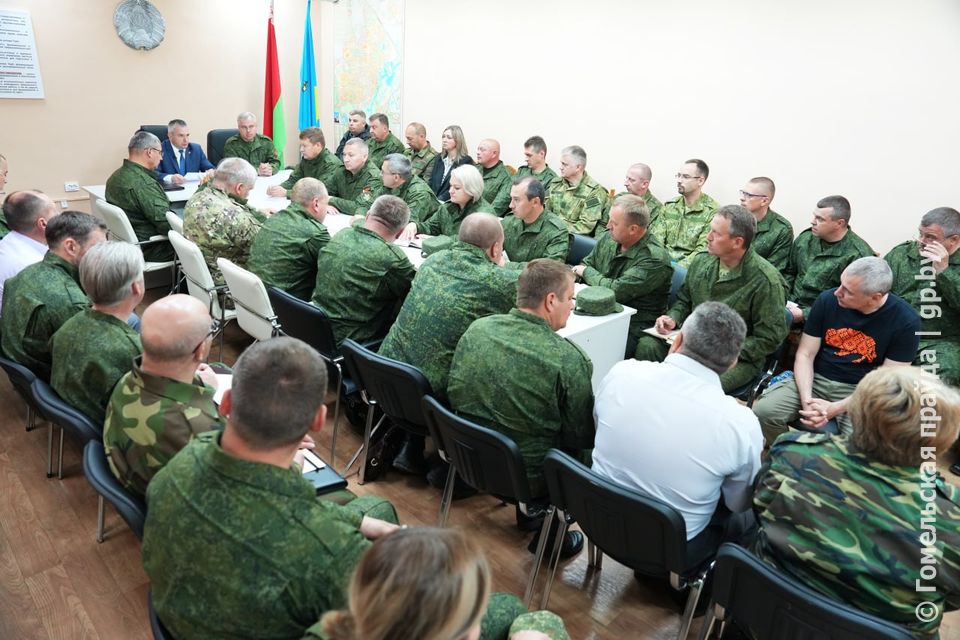 – Подготовка штаба районной территориальной обороны и подразделений территориальных войск для выполнения задач по предназначению, – определил председатель облисполкома Иван Крупко основную задачу командно-штабных учений, которые проходят на Гомельщине. Сборы проводятся с 11 мая по 2 июня. Сформирован штаб районной территориальной обороны и отдельный стрелковый батальон территориальных войск Гомеля, а также рота огневой поддержки батальона территориальных войск Мозырского района. По сценарию учений рота огневой поддержки занимает опорный пункт, чтобы не допустить прорыв незаконного вооруженного формирования. Задача подразделения отдельного стрелкового батальона занять критически важный объект и организовать его охрану, а также совместно с районным отделом внутренних дел нести службу на КПП.
