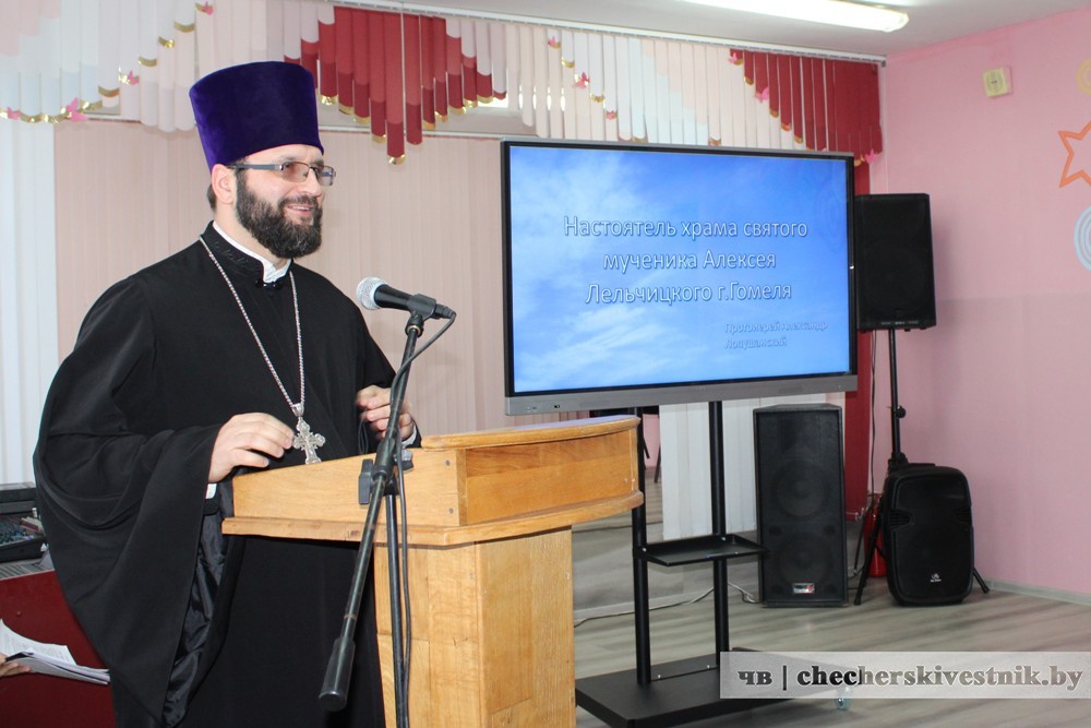 Настоятель прихода храма священномученика Алексия Лельчицкого в г.Гомеле протоиерей Александр Лопушанский раскрыл собравшимся православное понимание терминов «духовность» и «нравственность», приводя примеры из жизни, литературы и кинематографа. В завершение он призвал читать Евангелие и достигать достойных звания христианина целей в жизни.