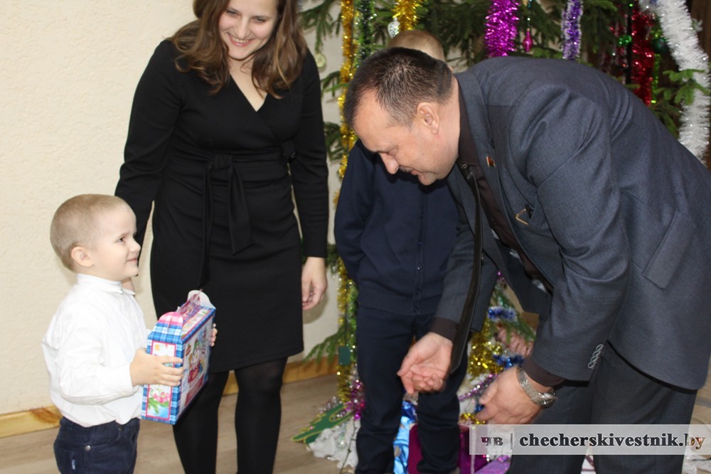 Гости прибыли к многодетной семье Лашкевич. Трое мальчишек – Вадим, Максим и Денис с радостью принимали поздравления и подарки от председателя райсовета депутатов Сергея Малюкова и депутатов Елены Ганжиной и Александра Ганжина.