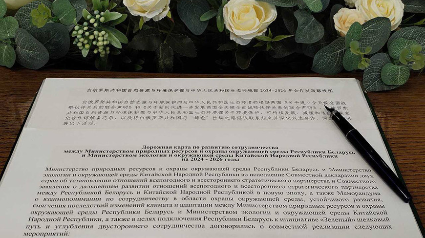 Министр природных ресурсов и охраны окружающей среды Беларуси Андрей Худык и министр экологии и окружающей среды КНР Хуан Жуньцю подписали дорожную карту по развитию сотрудничества на период 2024-2026 годов, сообщили в Минприроды.
