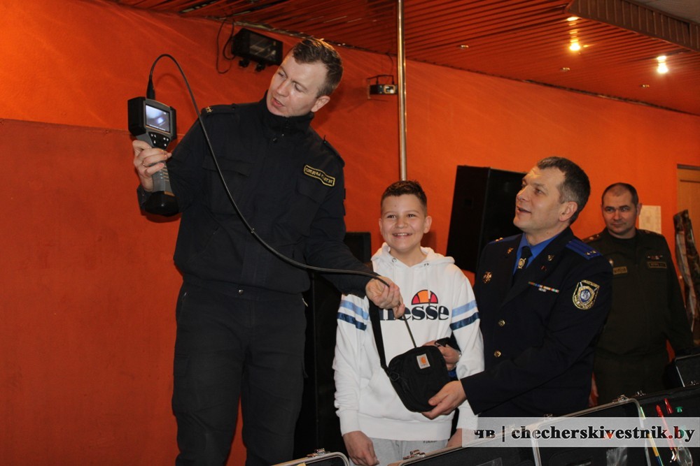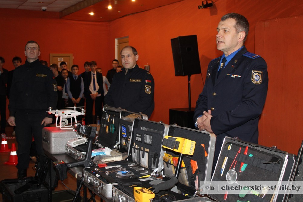 – Возможно, кому-то это покажется удивительным, но один из главных инструментов следователя-криминалиста – привычный фотоаппарат. Любые работы всегда начинаются с фиксации места происшествия, – обращает внимание ребят начальник криминалистического отдела управления Следственного комитета по Гомельской области Андрей Кашевич. – Однако арсенал сотрудника им не ограничивается, сегодня на вооружении ведомства и дроны, и нелинейные локаторы, световые башни, металлоискатели, передвижные криминалистические лаборатории, лупы и многое другое. Использование высокотехнологичного оборудования почти не оставляет преступникам шанса уйти от ответственности. Что в конечном итоге и является смыслом профессии.