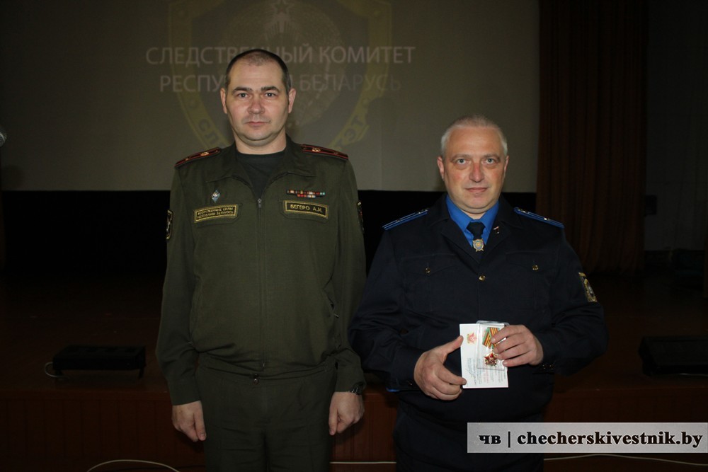 Приятным моментом мероприятия стало выступление начальника обособленной группы военного комиссариата Андрея Вегеро, который в преддверии Дня защитников Отечества и Вооруженных Сил Республики Беларусь за многолетнюю добросовестную службу вручил нагрудный знак Белорусского союза офицеров майору юстиции, старшему следователю РОСК Александру Туровцу.