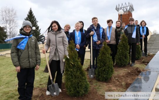 В Чечерске юные миротворцы дополнили памятное место туями