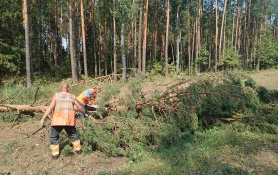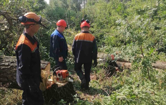 Бензопилы гудят вдоль дороги на Высокую Гриву и возле ЛЭП в Ковалевом Роге. На ликвидации последствий урагана заняты работники лесхоза.