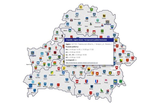 Министерством юстиции разработана интерактивная карта служб «одно окно». Она доступная на официальном сайте Минюста, представлена в виде карты Беларуси, на...