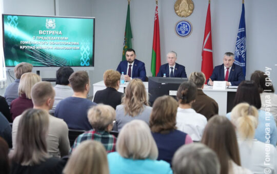 Председатель Гомельского облисполкома Иван Крупко во время рабочего визита в Ельский район встретился с коллективом коммунального жилищно-эксплуатационного унитарного предприятия "Ельское",...