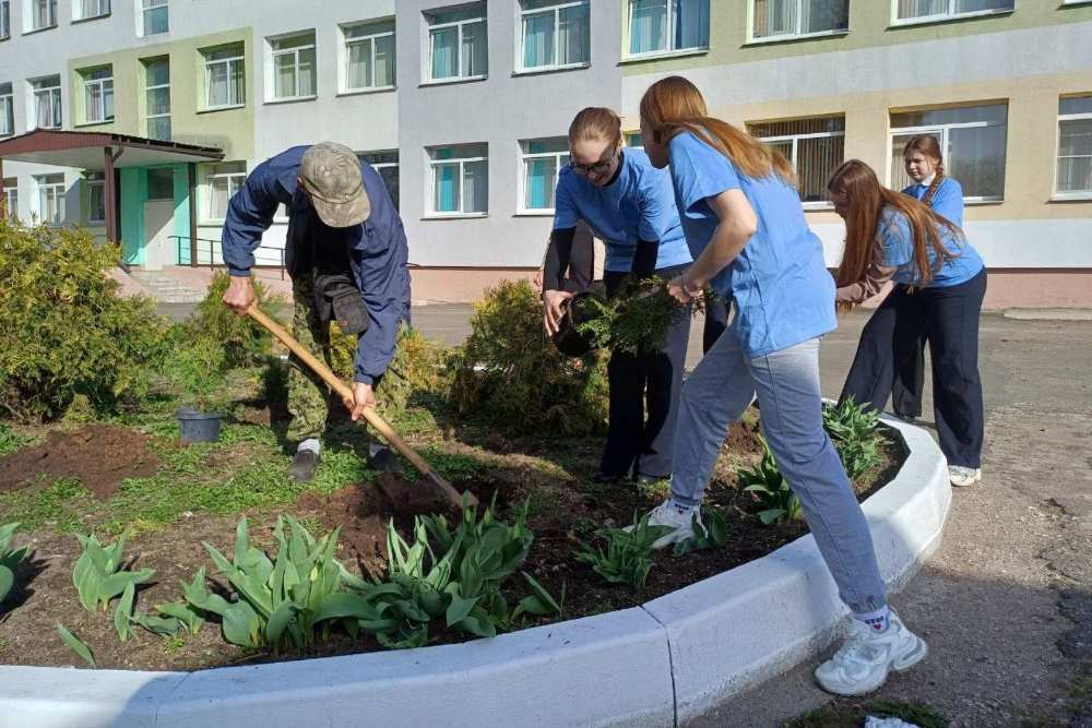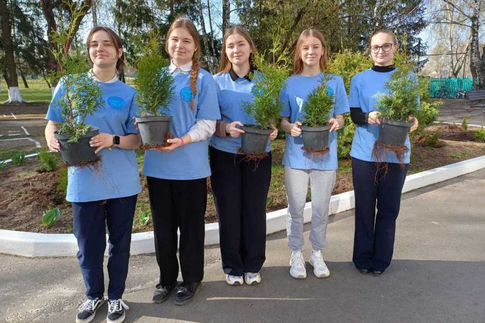 Зеленые туи в знак благодарности за мир высадили во второй школе города Чечерска