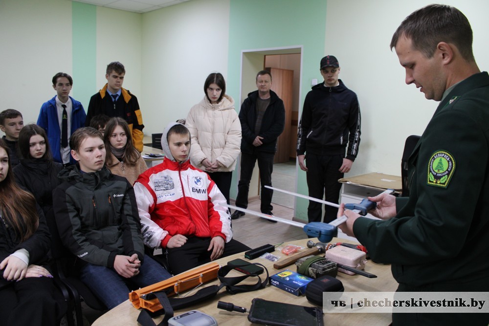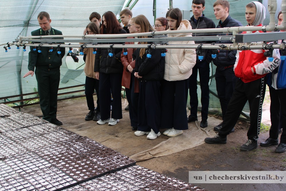 Ребят старших классов первой и второй городских школ ознакомили с инфраструктурой лесного хозяйства, показали и рассказали, на что направлены усилия коллектива и какие применяются современные виды технологий производства. Помощник лесничего Илья Голик подробно рассказал ребятам о профессии лесовода, ознакомил с видами работ по уходу за лесом, его охраной и обновлением, ввел в курс по вопросам лесохозяйственной деятельности. Школьники побывали в питомнике и узнали, где закладывается основа легким планеты. Сегодня в состав Чечерского спецлесхоза входят Бабичское, Беляевское, Нисимковичское, Полесское, Рудня-Бартоломеевское, Чечерское, Кормянское и Литвиновичское лесничества, а также лесозаготовительный участок и деревообрабатывающий цех. Более чем 300 человек следят за состоянием лесных угодий, ведут госучет лесов, охраняют от уничтожения и пожаров, занимаются лесовосстановлением, заготавливают древесину, производят различные пиломатериалы, реализуют готовую продукцию населению и отправляют на экспорт.