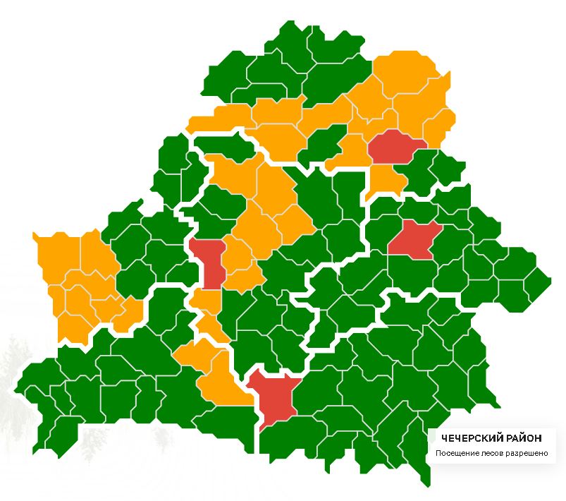Актуальную информацию о классе пожарной опасности можно узнать по карте запретов и ограничений на посещение лесов в районах Республики Беларусь по ссылке http://www.mlh.by/maps/map.php.