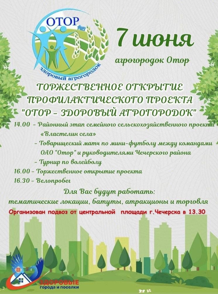 7 июня в Оторе пройдет торжественное открытие профилактического проекта “Отор – здоровый агрогородок”.