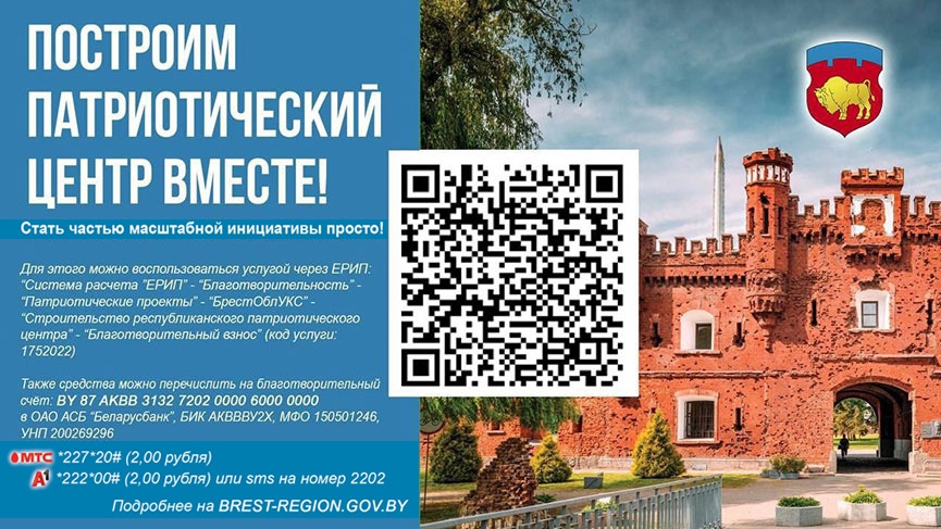 Личный вклад в продолжение славных традиций отцов и дедов может сделать каждый белорус, присоединившись к сбору средств на строительство Республиканского центра патриотического воспитания молодежи в Брестской крепости.