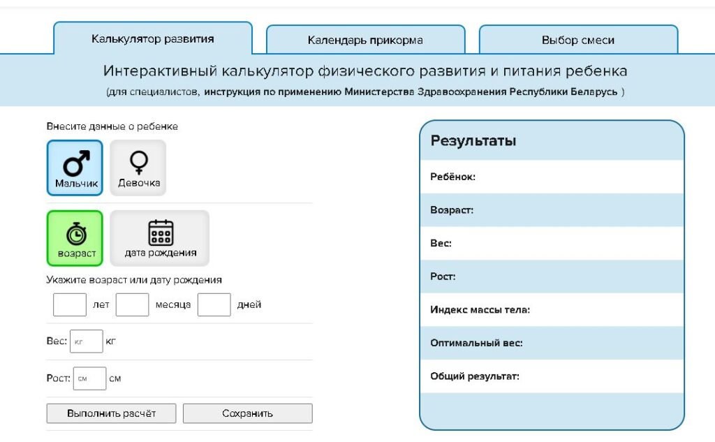 В Беларуси разработали интерактивный калькулятор физразвития и питания ребенка
