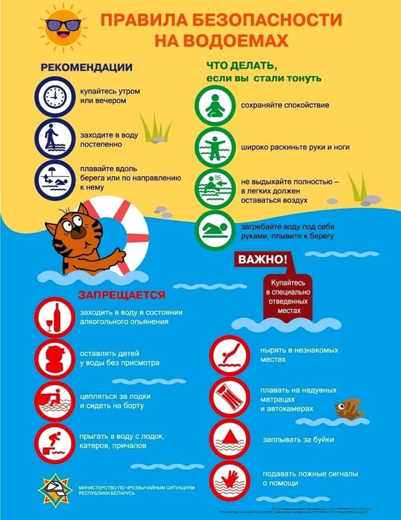 Если вы планируете отдых возле воды, выбирайте специально разрешенные места, в том числе, где дежурят спасатели ОСВОД. Дно водоема должно быть чистым и неглубоким, без коряг, водорослей и ила. Осмотритесь – нет ли битого стекла, острых камней и других опасных предметов. Наблюдайте за детьми, когда они играют на берегу, не выпускайте их из вида.