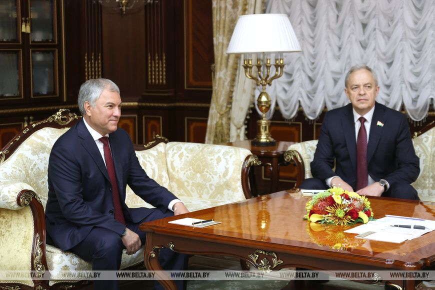 Президент Беларуси Александр Лукашенко 2 июля провел встречу с председателем Государственной думы Федерального собрания России Вячеславом Володиным, пишет БЕЛТА.