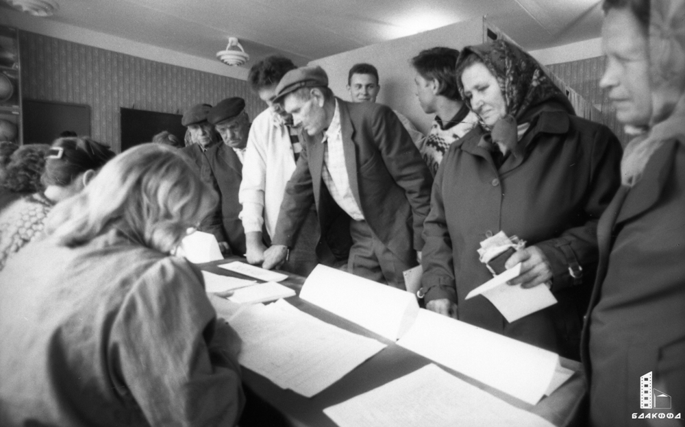 1994 г. Избиратели Тишовского избирательного участка № 51 Могилевского района идут на второй тур выборов Президента Республики Беларусь.