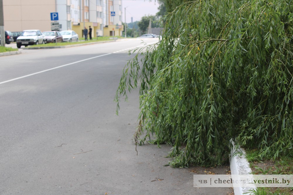 Движению автотранспорта по улице Интернациональной в Чечерске мешала низкорастущая ива.