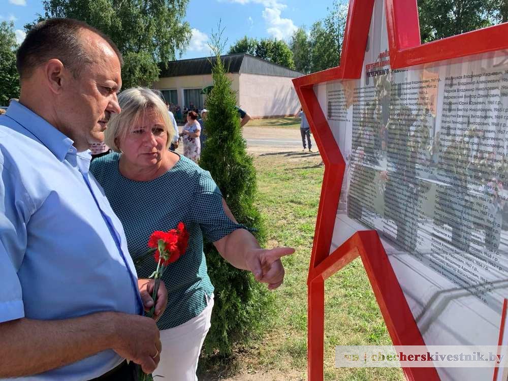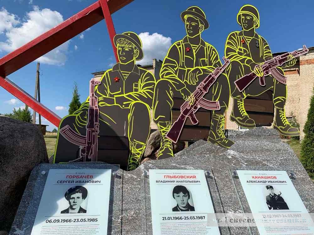 В 2022 году активный член районной организации общественного объединения «Белорусский союз ветеранов войны в Афганистане» Михаил Малинов, который не понаслышке знает о вооруженном конфликте 80-х годов в Афганистане, выступил с инициативой увековечить память погибших земляков. Заручившись поддержкой боевых товарищей, единомышленников, председателя местного сельисполкома Жанны Малиновой и руководителя сельхозпредприятия «Звезда» Галины Трибунах, мужчина принялся за изготовление в родном агрогородке памятного комплекса. Общими усилиями два года назад в центре усадьбы была установлена звезда с символичным названием «Память жива». Она гармонично дополнила общую композицию памятного знака воинам-интернационалистам. После Михаил Малинов разработал проект и выиграл его в открытом конкурсе гражданских инициатив. Ассоциация местных Советов депутатов выделила на обустройство памятного места более 4 тысяч рублей. Это финансовая поддержка позволила дополнительно возвести стелу с силуэтами погибших в Афганистане трех чечерских солдат – Александра Канашкова, Сергея Горбачева и Владимира Глыбовского. В обновленном комплексе появилась также информация о 132 парнях Чечерщины, принимавших участие в боевых действиях Афганистана.