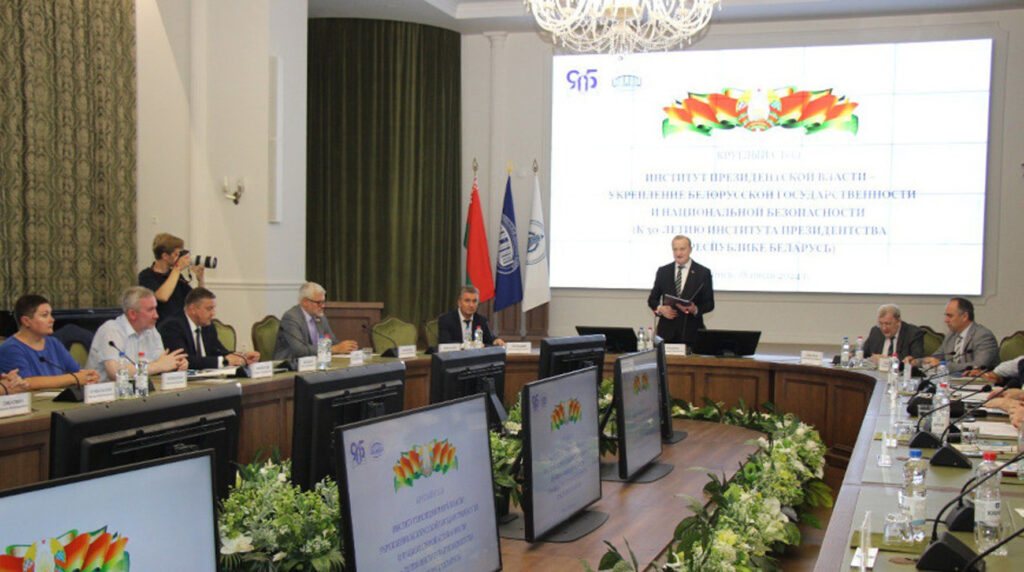 В НАН Беларуси прошел круглый стол “Институт президентской власти в укреплении белорусской государственности и национальной безопасности (к 30-летию института президентства в Республике Беларусь)”. В рамках мероприятия ученые обсудили важнейшие этапы развития института президентской власти, роль института президентской власти в укреплении национальной безопасности и другие темы.