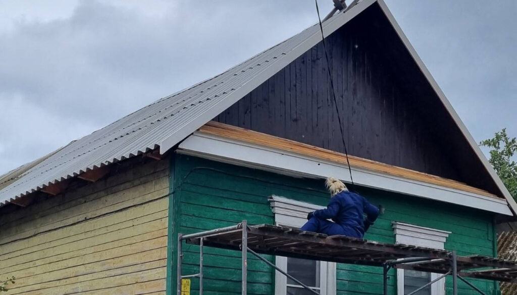 Жильцам дома №85 по улице Октябрьской в Чечерске ураган нанес большой ущерб – шквалистым ветром повредило крышу. На помощь горожанам пришли коммунальники. Ремонт уже на стадии завершения.