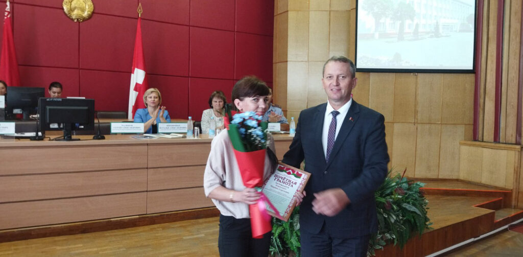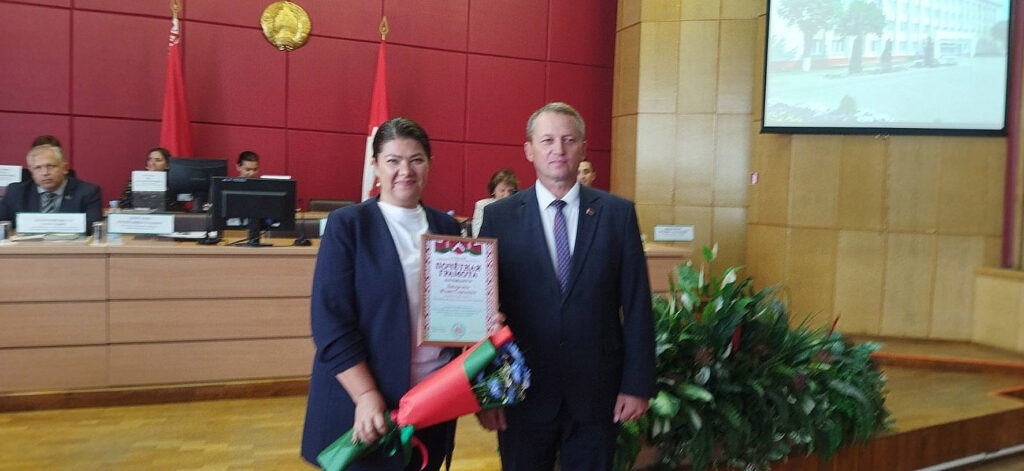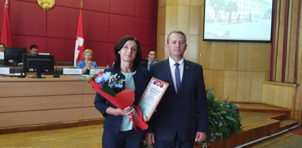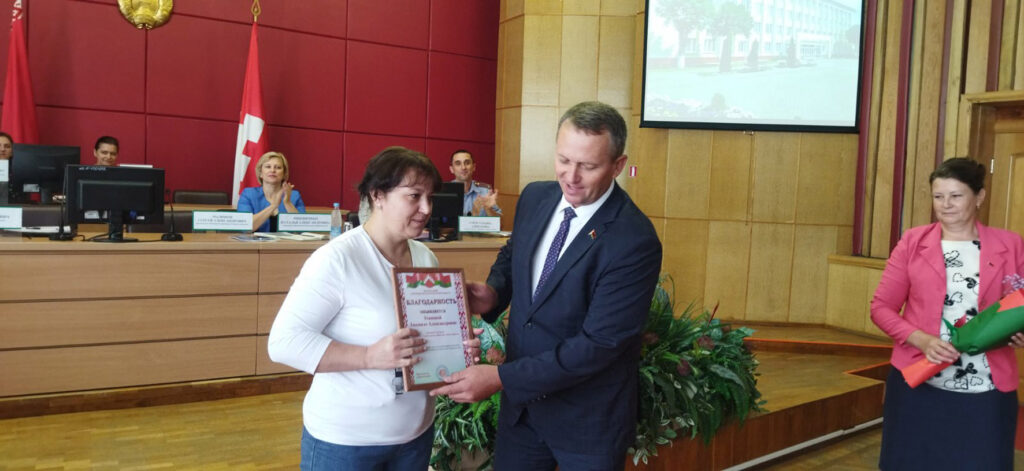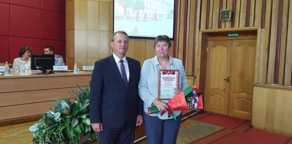 Также добрые слова звучали в адрес работников торговли. Заместитель директора магазина «Евроопт» Алеся Козлова награждена юбилейной медалью «100 год органам гандлю Беларусі». Директор магазина «Доброном» Марина Борисенко отмечена Почетной грамотой райисполкома. Благодарность районного исполнительного комитета объявлена директору магазина «Копеечка» Светлане Миненковой и продавцу магазина «Петруха» Людмиле Усановой.