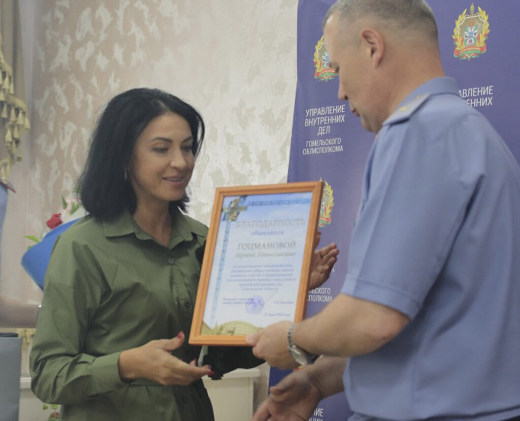 На пресс-конференции журналистам вручены благодарности УВД. Награду получила в частности главный редактор райгазеты «Чачэрскі вестнік» Ирина Гоцманова.