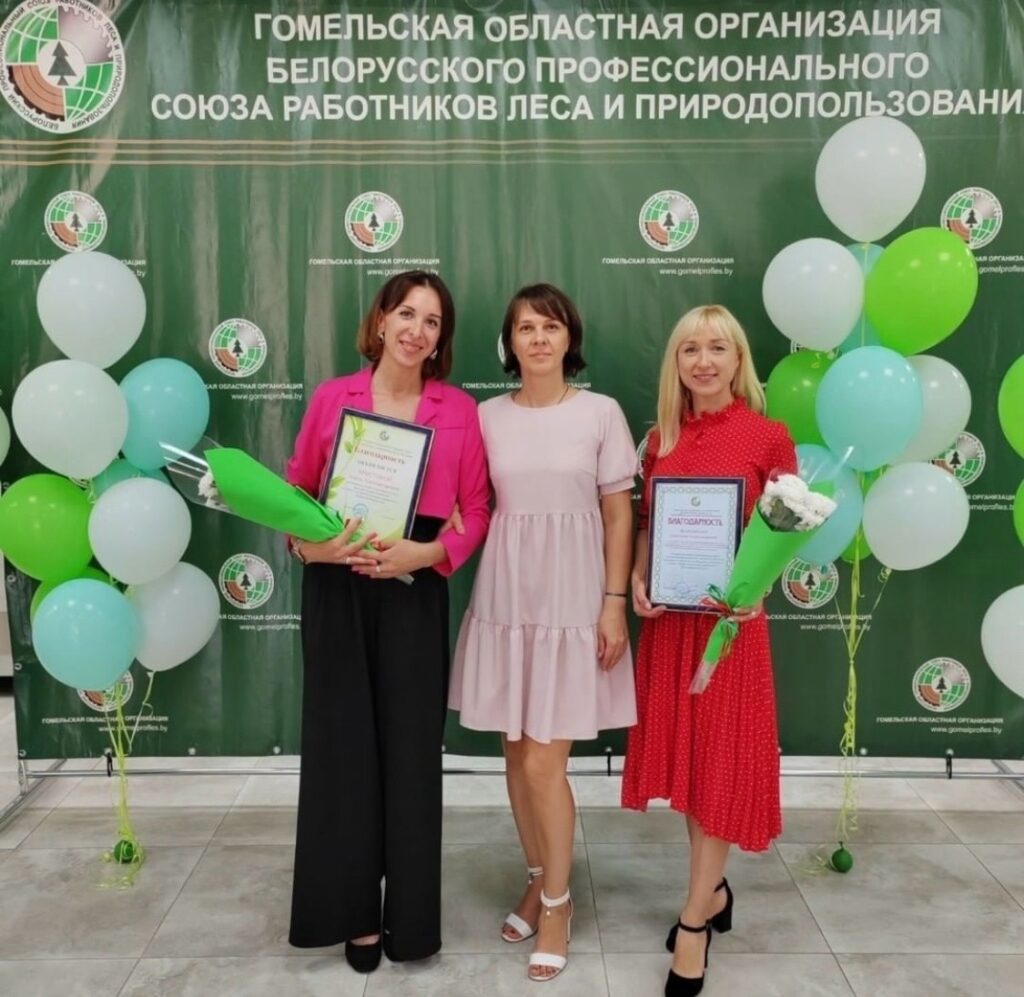 На торжественном мероприятии ко Дню лесного хозяйства в Гомеле Алеся Христина и Анастасия Перетятько заслуженно награждены Благодарностями Республиканского комитета и Гомельской областной организации Белорусского профсоюза работников леса и природопользования.